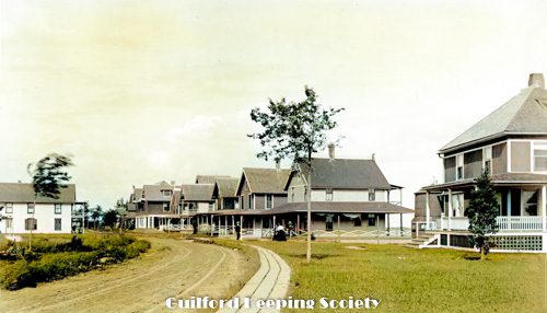 Quonnipaug – looking south. Rustic Inn is on the right. (photo probably by, since his handwriting) HENRY S. DAVIS.