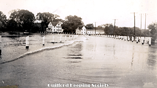 Jones Bridge under water Taken during the hurricane. Route 146 facing west at the bridge over the West River. Sept 21, 1938 BEATRICE OLVER