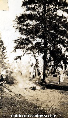 East Cemetery – burning wreckage After hurricane. Alderbrook Cemetery on Boston Street. Oct 7, 1938 ALBERT D. HOTCHKISS.