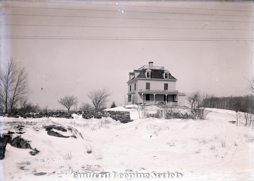 H. Milton Bullard Sr. house, in the snow, view of the yard, stonewall 376 State St c1915