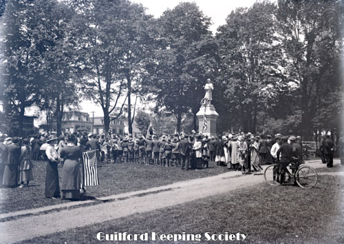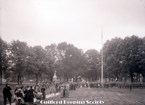 Memorial Day ceremonies on the Green around the Civil War statue. Path north south in the center of the Green not paved Green c1915