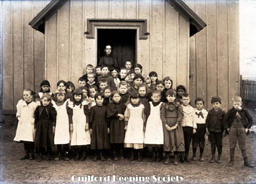 old Boston St school in the front of the present 95 Boston St with children and teacher Lottie Norton front yard of 95 Boston St c1915