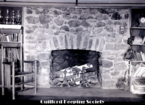 Mrs. Hooker's children's camp (1915-1930) Indian Cove in the area of Lower Rd Interior of one of the cottages at the camp showing the stone fireplace Indian Cove at Lower Rd c1915