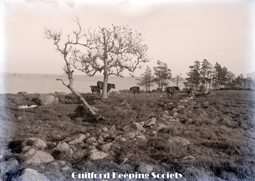 Daniel Reeve Spencer's cattle in Henry Spencer's Big Lot south of Prout St at Pipe Bay Indian Cove Prout St Indian Cove Pipe Bay c1915