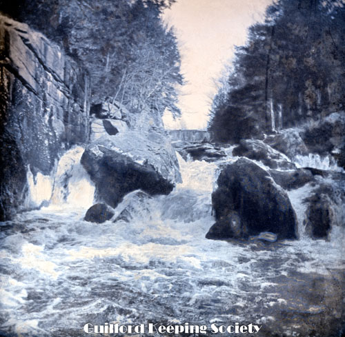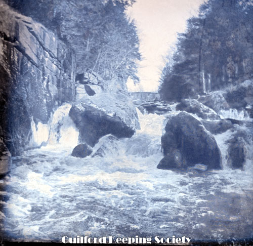 fast moving stream running through ledges, possibly near Nineveh Falls Hammonasset River, near Nineveh Falls possibly c1910