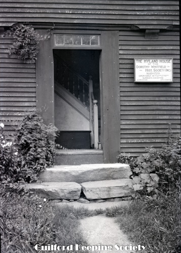 George Hyland house, front door with Dorothy Whitfield Museum sign 1660-1720, admission 25 cents 84 Boston St c1930