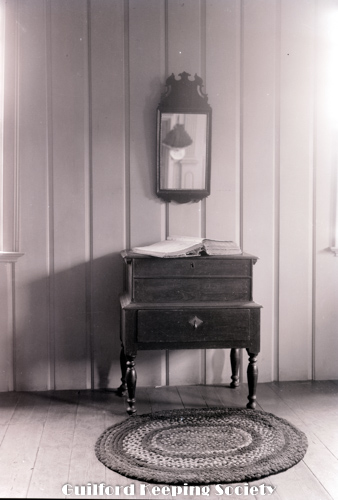 George Hyland house, interior, small chest with open book and mirror on wall 84 Boston St c1930