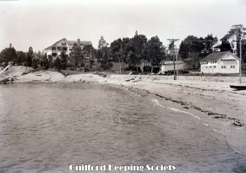 Sachem's Head Hotel, George Sperry proprietor, on the foreground is Bloody Cove Beach with bathers and seawall 125 Falcon Rd on the site of c1940
