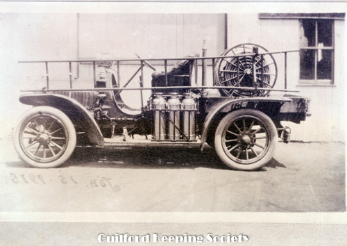 fire truck, the first chemical truck, probably at Clarence Norton's garage on Water St, copy photo 23 Water St 1915