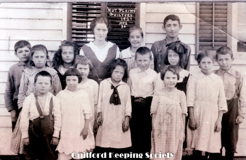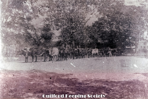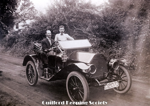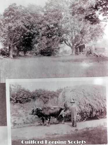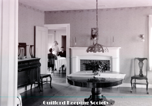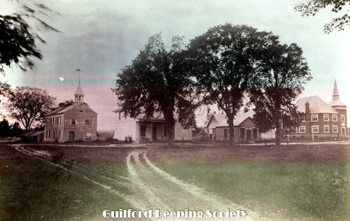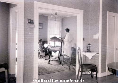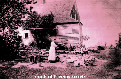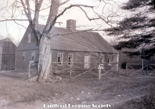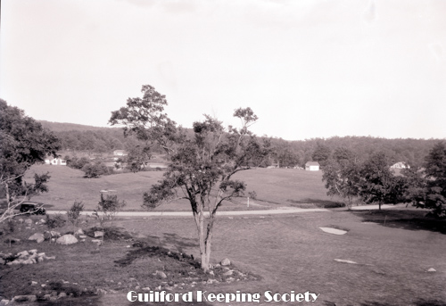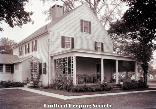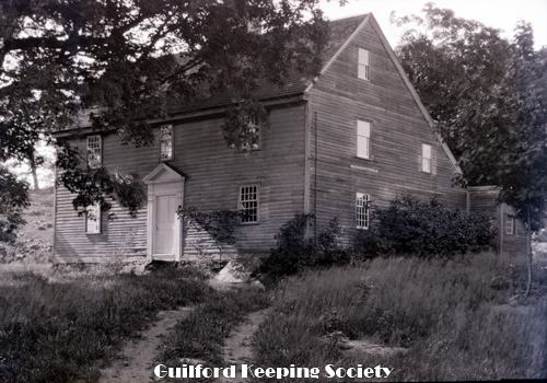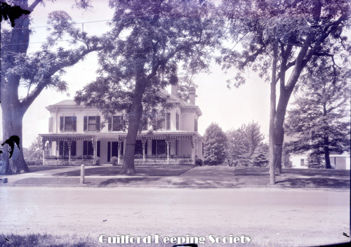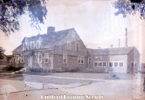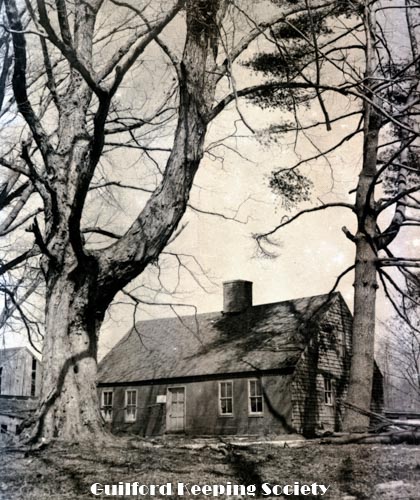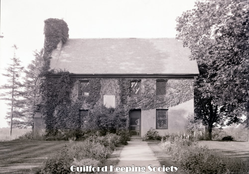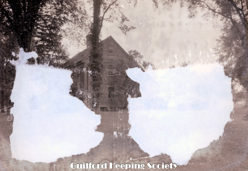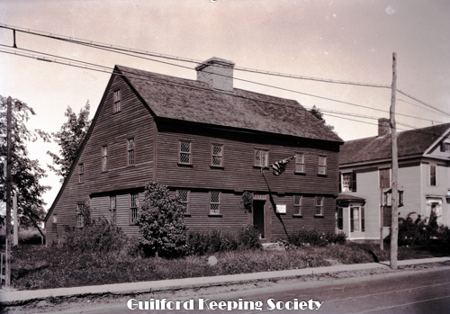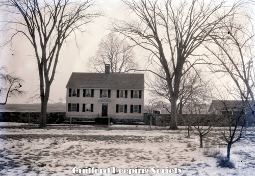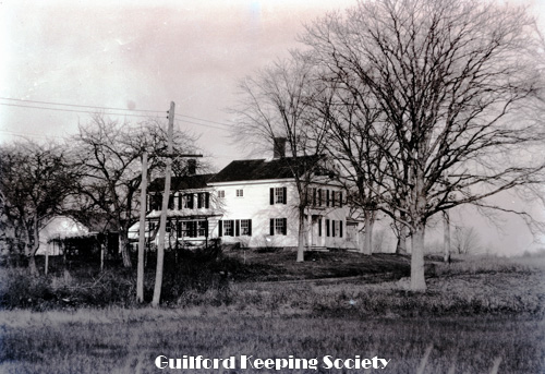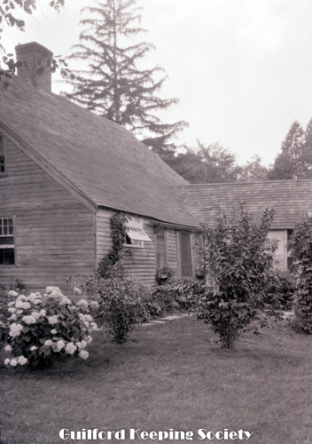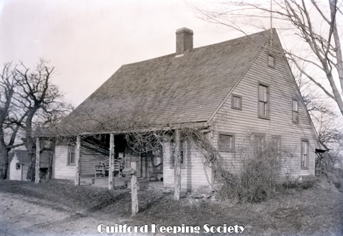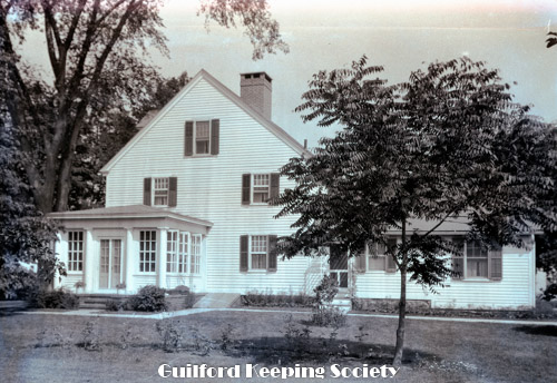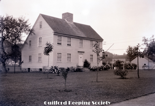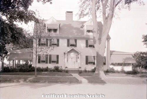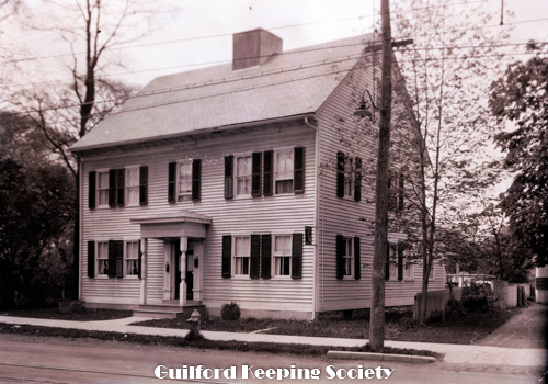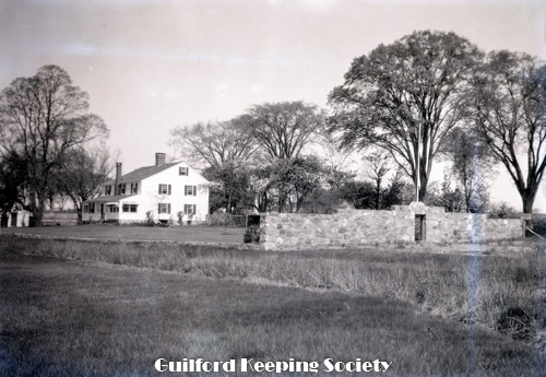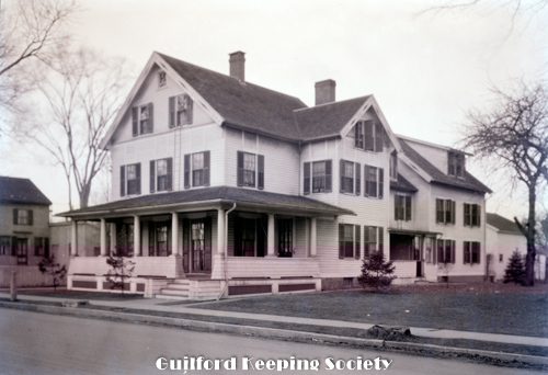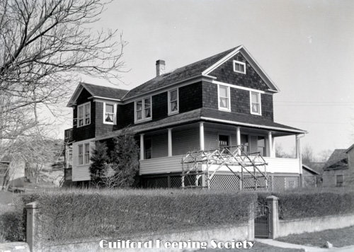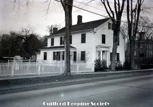 Samuel Shelley house (Harvey Leete had his blacksmith shop here), Guilford Institute is in the background on the right 1139 Boston Post Rd c1930
