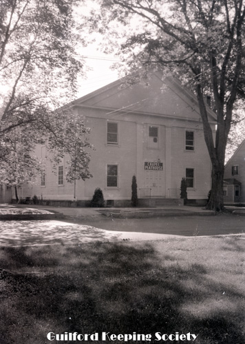 Madison, Lee Academy on the left, Madison Town Hall on the right Meeting House Lane in Madison at the Green c1930