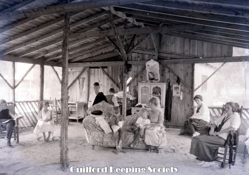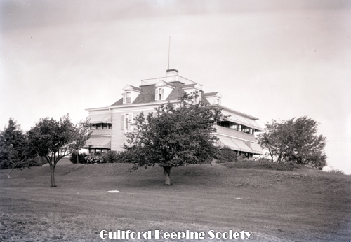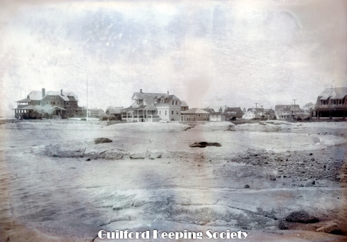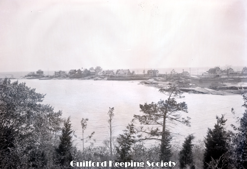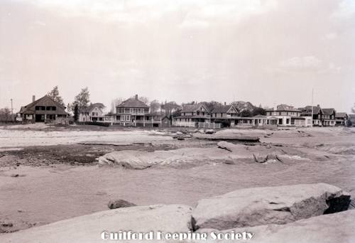 Sachem's Head Hotel at 125 Falcon Rd and Rockbound cottage at 50 Falcon Rd as viewed from Vineyard Point Sachem’s Head, Falcon Rd c1935
