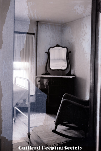 Dr Evans' Sanitarium, bedroom with rocking chair, mirror and bed 148 Whitfield St c1930