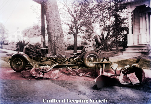 car accident on Boston St George Shelley house at 269 Boston St is the house on the left. Car demolished after hitting tree in front of the Nathaniel Fowler house 276 Boston St Boston St 1926