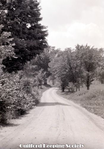 Guilford Lakes, country dirt road, probably North Madison Rd Promotional picture for Land & Lake Dev. Co brochure Guilford Lakes c1930