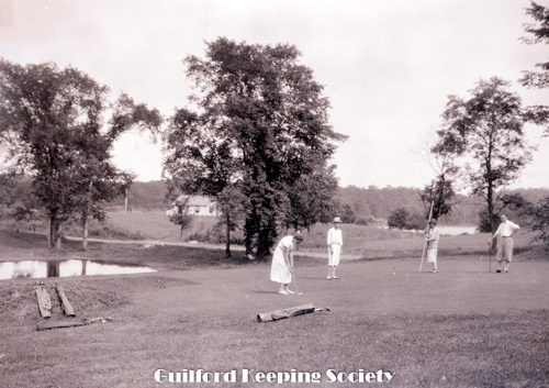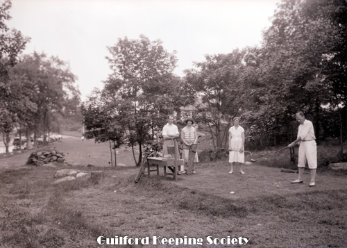 Guilford Lakes golfers, 2 men and 2 women on the putting green Guilford Lakes c1930