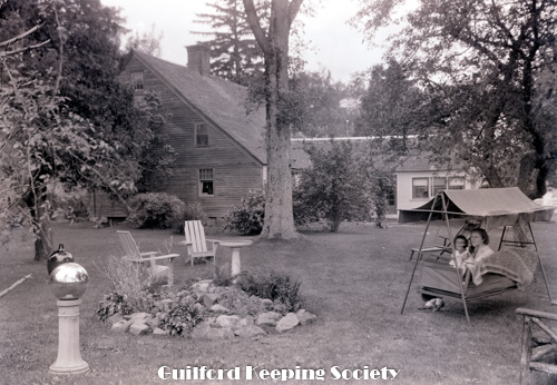 Joseph Hall house, rear yard, two people on a swing, sundial 929 Nut Plains Rd c1930