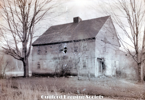 Lot Benton house from across Whitfield St showing front of the house with salt meadow behind it and stone wall on either side 485 Whitfield St c1935