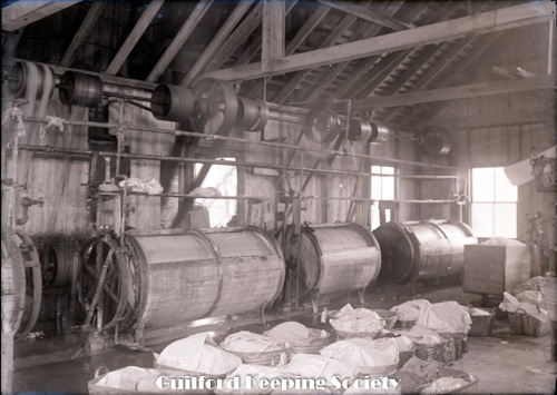 Walker’s Wet Wash - laundry. interior view with wooden washing machines. Near the Mill Pond according to Edith Nettleton. On or near the site of the VFW Hall.