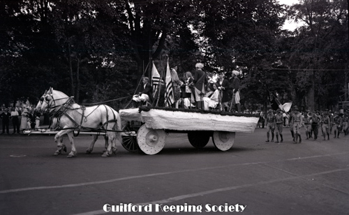 Tercentenary parade, Sea Scouts ship float St. John, Ben Franklin Store on far right, middle is Morris’s Guilford’s shopping center on Whitfield St Whitfield St Sept 4, 1939, Henry S
