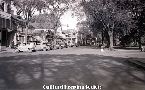 Whitfield St looking north from corner of Water St left to right Monroe building with Post office, Guilford bakery, Shoreline Fruit Co., First National Whitfield St c1935 Henry S