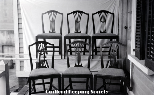 Eva B. Leete’s antiques, 6 cushioned chairs Fair St and Boston Post Rd Fair St 98 c1920 Henry S