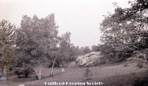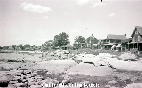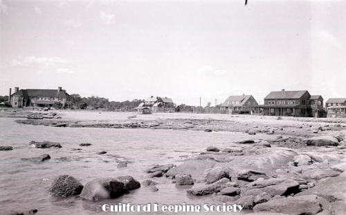 Loyal Ledge, Sachem’s Head as viewed from the rocks at chimney corner. House on the right is Charles Mitchell house 31 Loyal Ledge Lane. c1935 Henry S. Davis