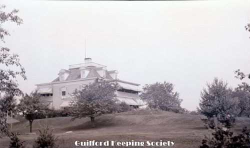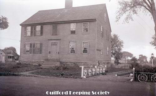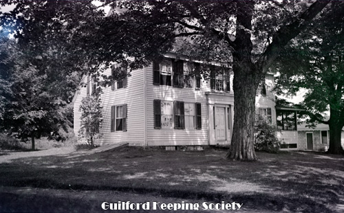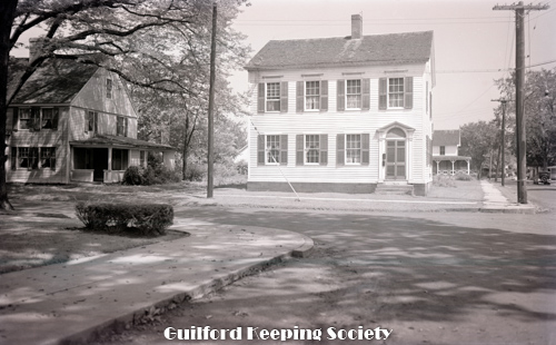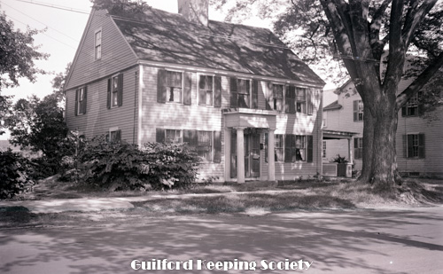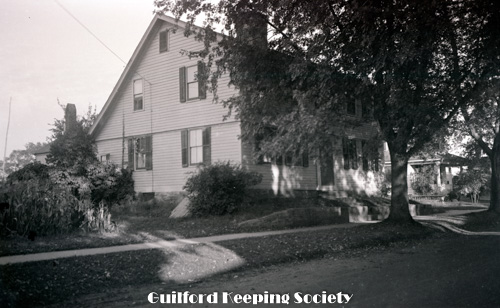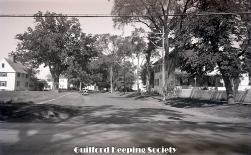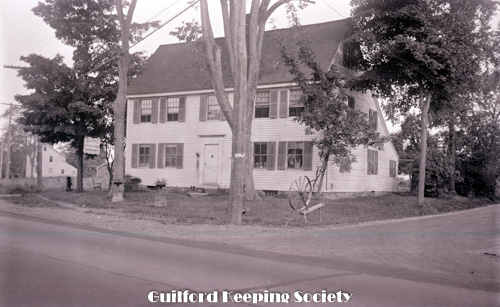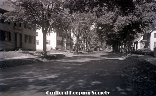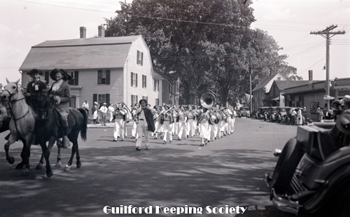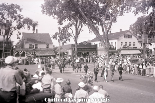 Guilford Fair parade, marchers going north on Whitfield St, Elias Cadwell house in original location 1 Boston St on the left Whitfield St at the corner with Boston St 1 Boston St c1930 Henry S