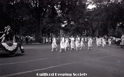 Guilford Fair parade, marchers from the Rainbow Assembly and floats on Boston St Boston St c1930 Henry S