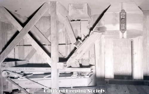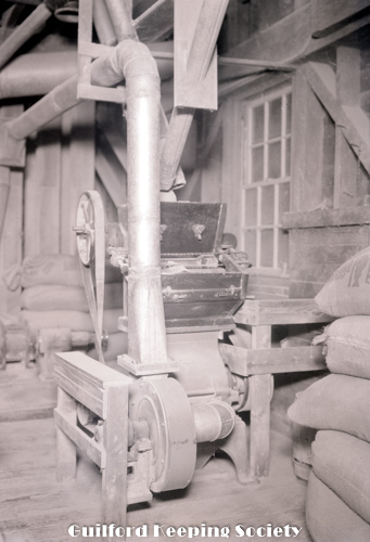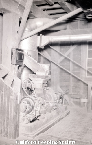Morse and Sons Feed Mill, Cherry St, interior showing machinery, sifter is written on one part 110 Cherry St c1930 Henry S