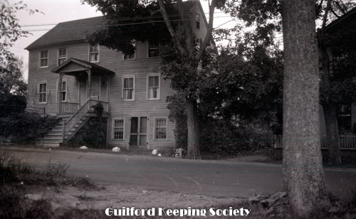 house with 2 front dormers and sides of stone, 1½ stories, 2 chimneys, 1764 number is above the front porch 644 Long Hill Rd, possibly, or next to Watrous nursing home in Madison c1935 Henry S