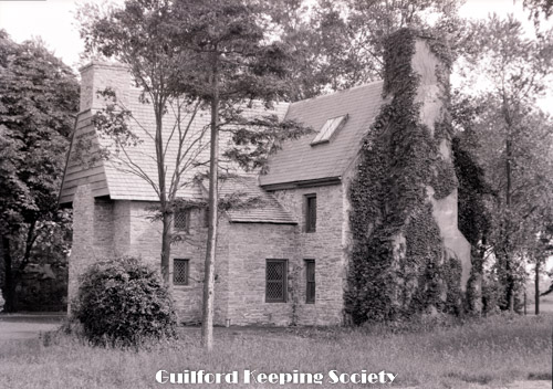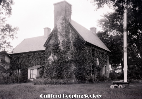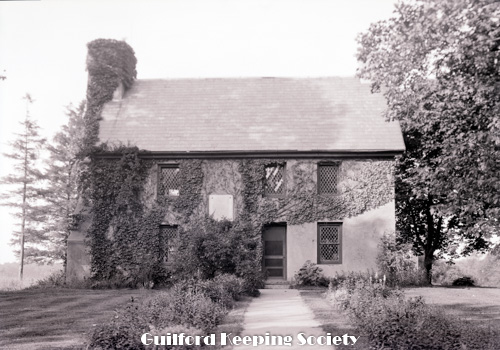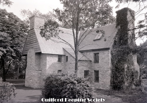 Henry Whitfield house, view of front covered by ivy and stucco over the stone on the exterior 248 Old Whitfield St c1933 Henry S