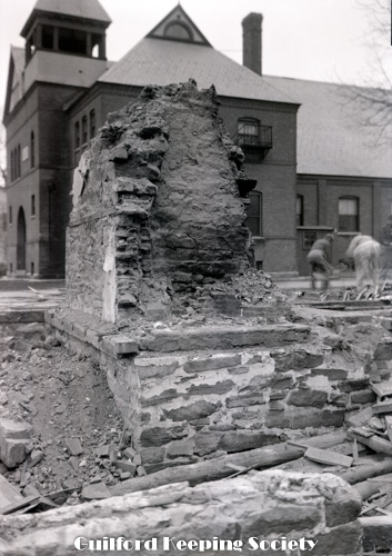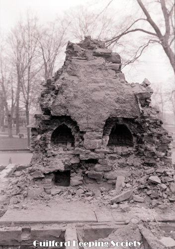Henry Whitfield house, view of the north side showing the chimney without ivy, Pre restoration of the chimney 248 Old Whitfield St 1933 Henry S