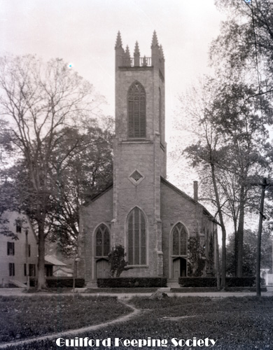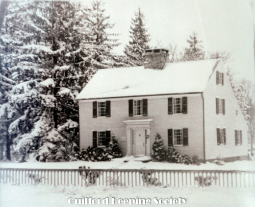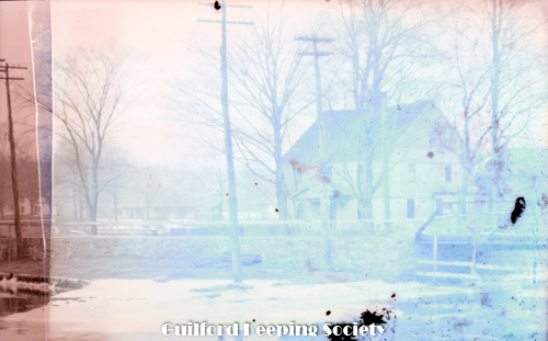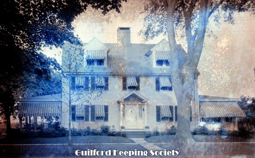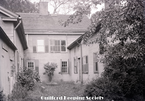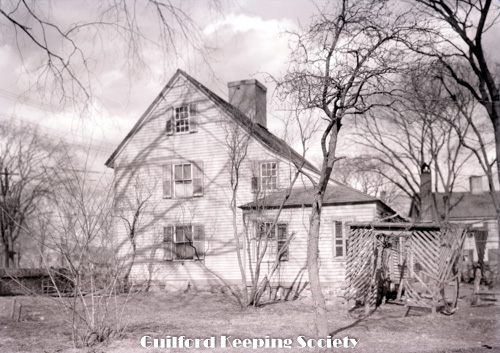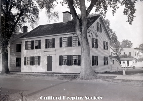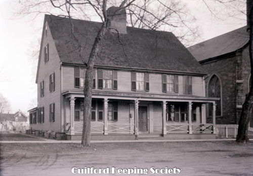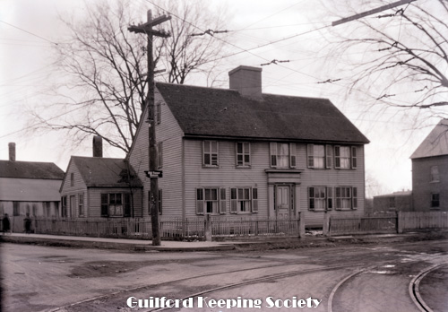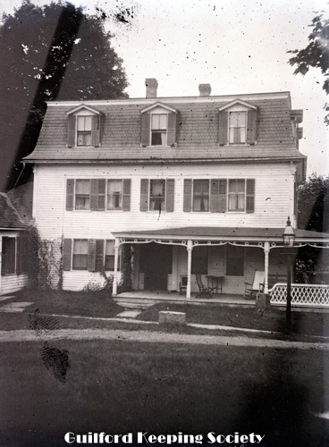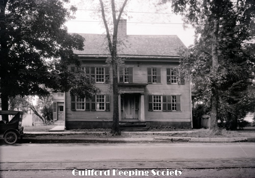 Dr. John Redfield house in its original location south of Guilford Town hall at 31 Park St, House was moved to 47 Broad St c1936 Henry S. Davis