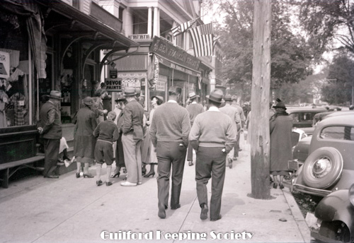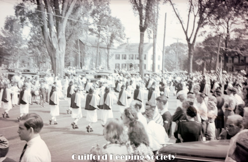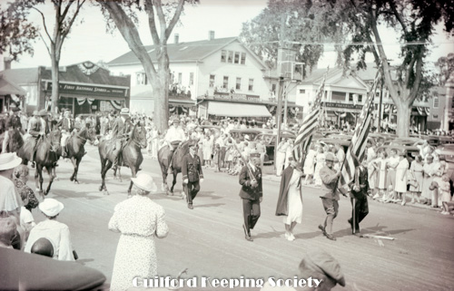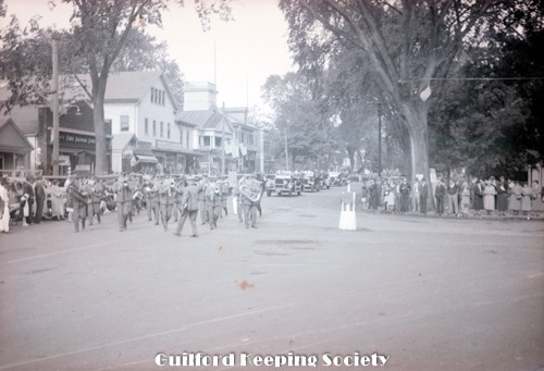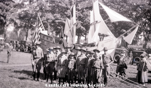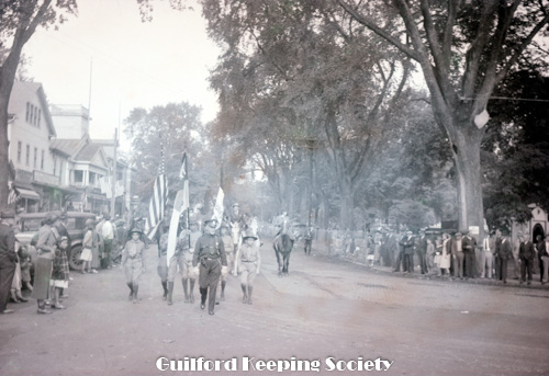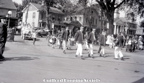 Guilford Fair parade, Boy Scout troop marching on Whitfield St Whitfield St and Water St corner c1925 Henry S