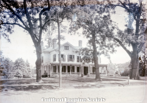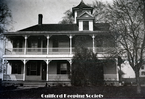 house, mansard roof, dormers in roof, porch on first floor unknown, not Guilford