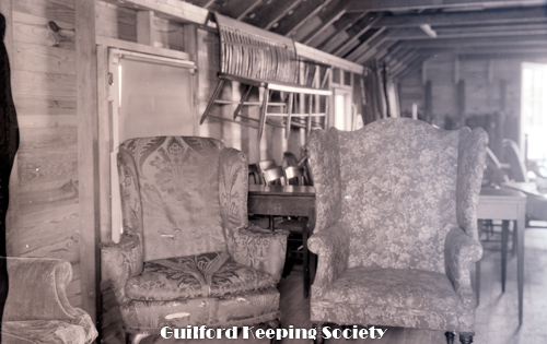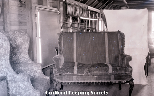 Eva B. Leete’s Antiques, loveseat and an armchair in a warehouse Fair St and Boston Post Rd Fair St 98 c1920 Henry S
