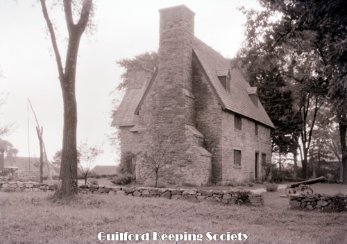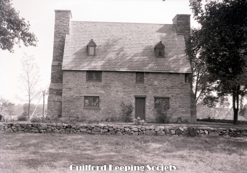 Henry Whitfield house, view of the east ell, on the far left is the Hart house at 259 Whitfield St 248 Old Whitfield St 1933 Henry S