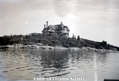 mansion with 3 chimneys on the waterfront unknown outside, not Guilford c1909 Oliver B