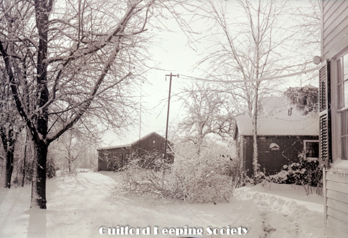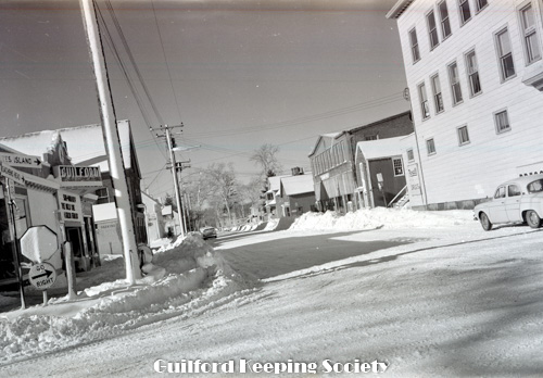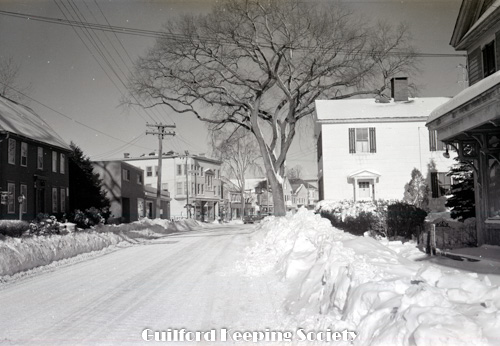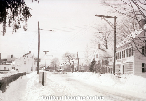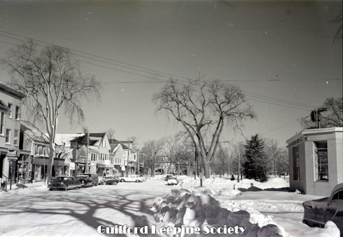 Water St looking west from near the Green, Guilford movie theater on the left, after snowstorm Water St Water St 1961 Shelton W. Dudley Sr