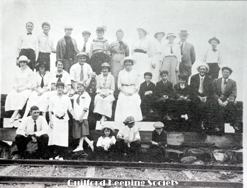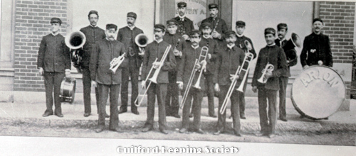 Arion band in front of the Battery at 14 Water St Under the leadership of H. P. Fowler. Copied from L.L. Johnson’s booklet Guilford Story of an Old Town 33 Whitfield St 1897 Shelton W. Dudley Sr