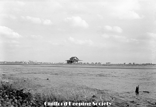 Grass Island and shack with Circle Beach houses in the background Grass Island taken from the Town Marina at the south end of Whitfield St c1975 Shelton W. Dudley Sr