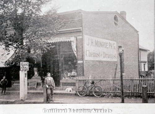 Post Office in a building on Erastus Dudley’s lot, from 1893 to 1897, when George Meigs was postmaster. Building torn down. c1895 Shelton W. Dudley Sr