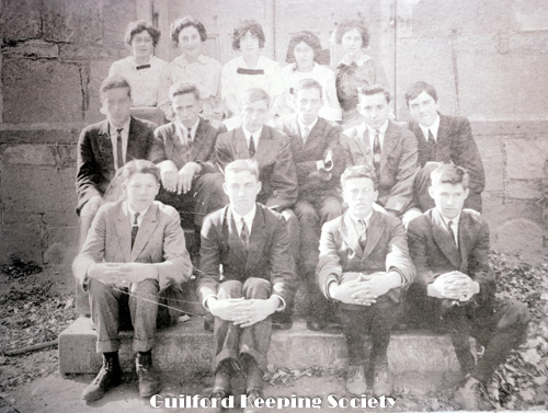 Guilford High School 1917 15 graduates seated on the steps of the Guilford Institute 120 North Fair St 1917 Shelton W. Dudley Sr