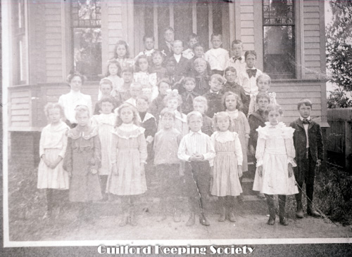 School children in front of school. Guilford Institute 120 North Fair St c1900 Shelton W. Dudley Sr