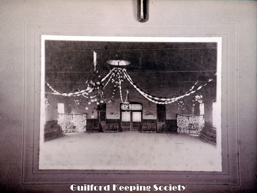 Guilford Town hall auditorium, decorated for an event 31 Park St 1915 Shelton W. Dudley Sr