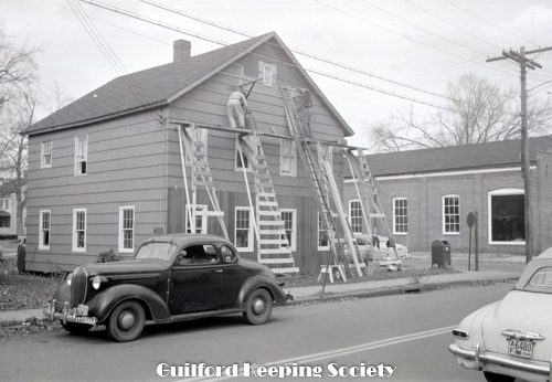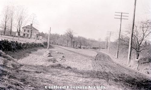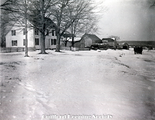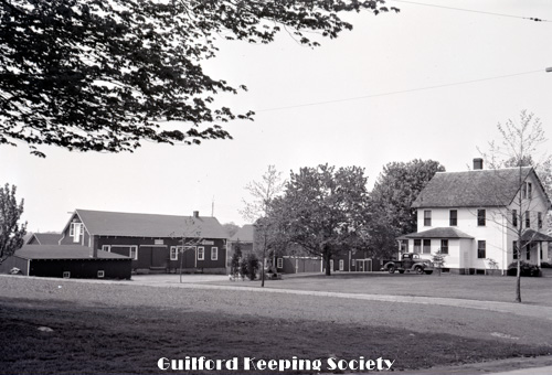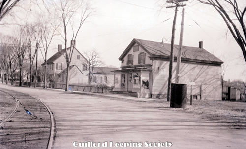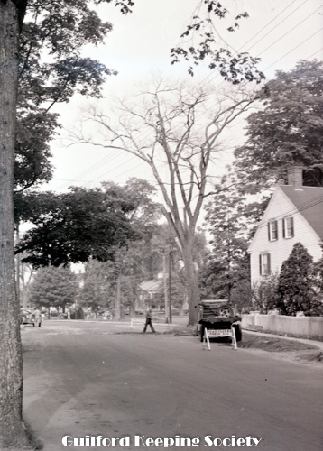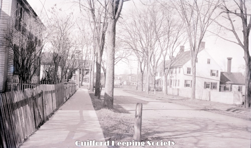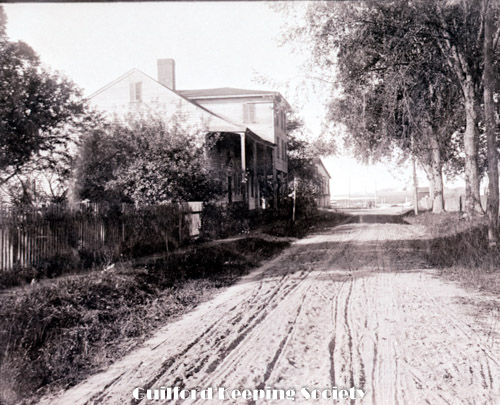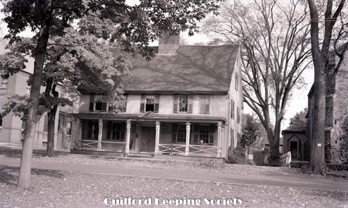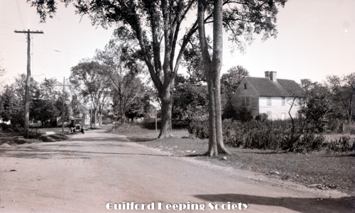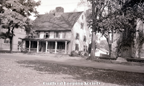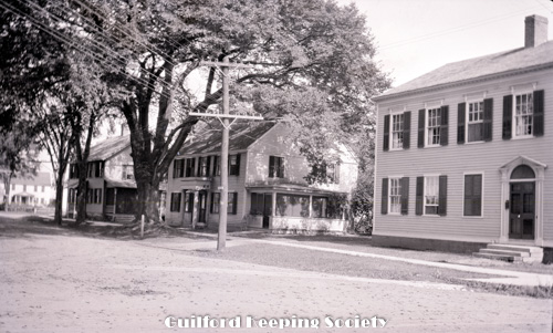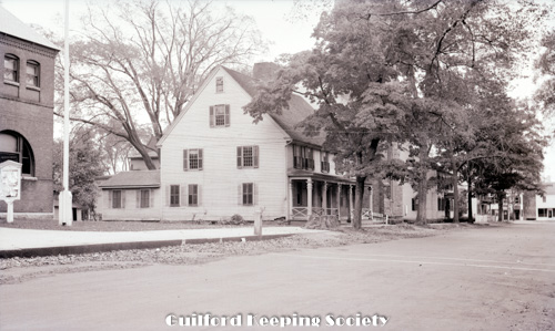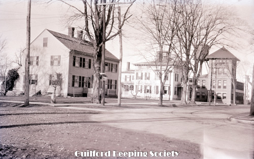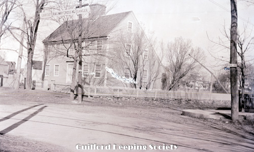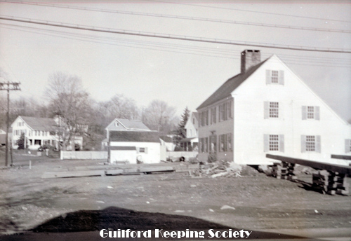 Dr. John Redfield house in its original location just south of Guilford Town Hall. Moved to 47 Broad St Oct. 1937 Albert D. Hotchkiss