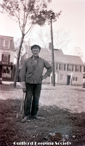 Hurricane damage, man with shovel standing with shovel in front of Dan Collins house at 21 Broad St Green Broad St 21 Sept