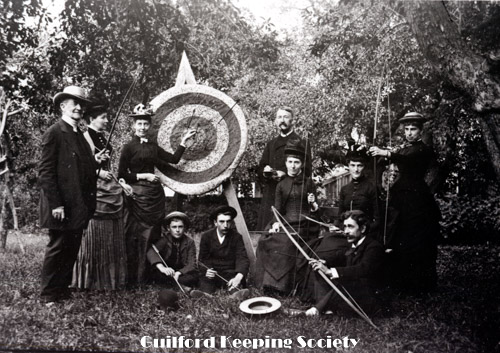 Archery club, copy photo Guilford Point House grounds at the end of Seaside Ave., probably c1900 Shelton W. Dudley Sr