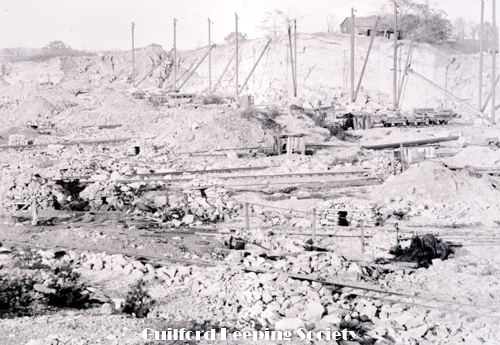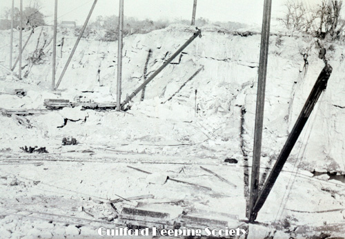 Hughes Brothers & Bang’s quarry, derricks in the quarry pit. Copy photo Uncas Point, Sachem’s Head Uncas Point Rd c1910 Shelton W. Dudley Sr